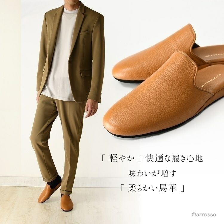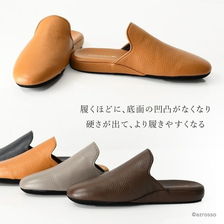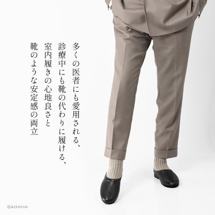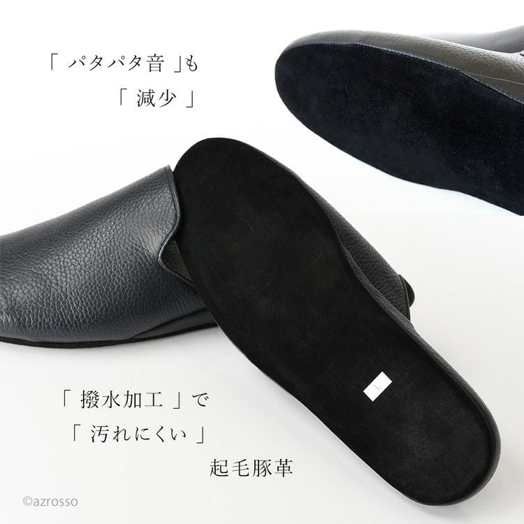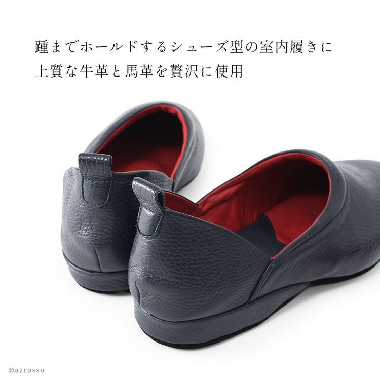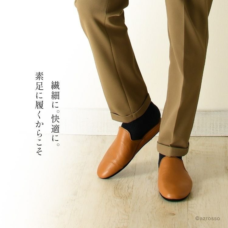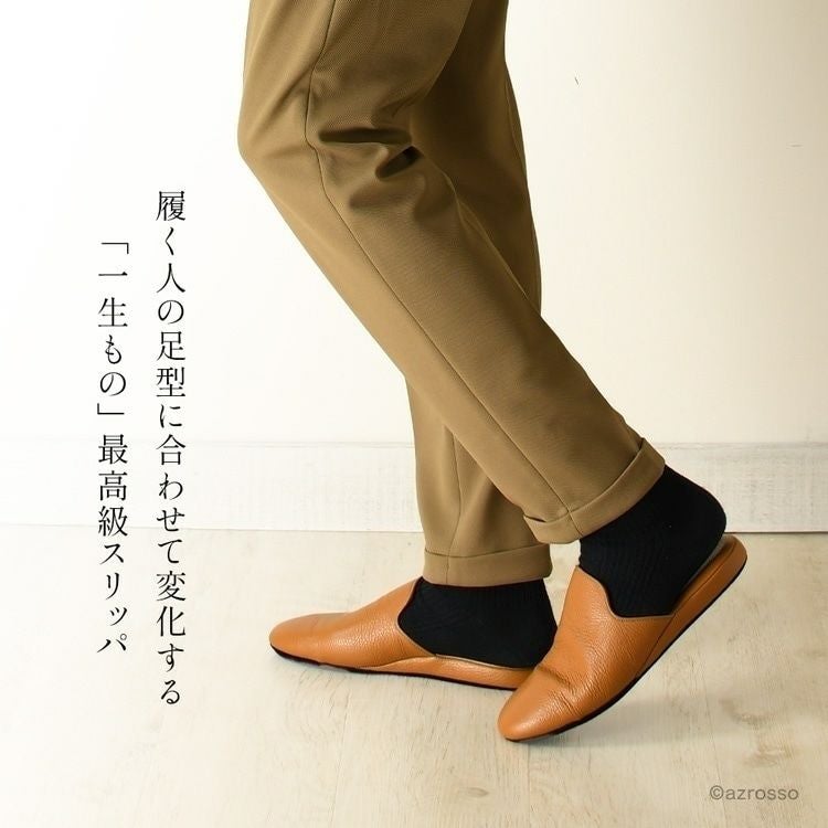 皇室御用達職人がつくる珠玉の本革かかと付きスリッパ。足と一体化するような快適な履き心地。日本製、抗菌・防臭・除電効果ありの男性用ルームシューズ。名入れ刺繍対応 日本製 高級 本革 ルームシューズ かかとあり かかと付き スリッパ メンズ 軽い 革 歩きやすい 室内用 参観 受験 パパ