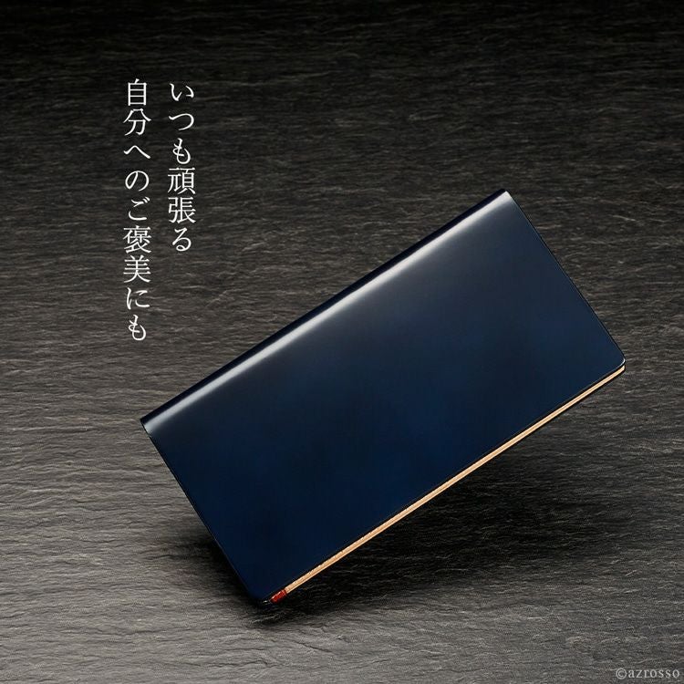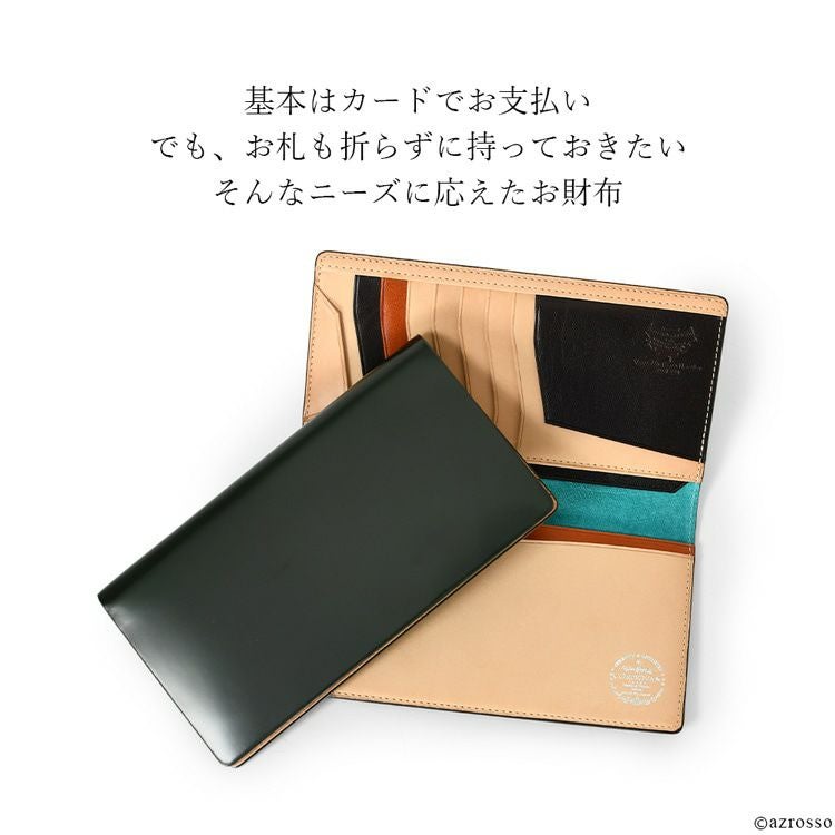 美しいコードバンの長財布はアトリエヒロの新作、ミニマリスト仕様に無駄をそぎ落とした薄くて軽い二つ折りの札入れ コードバン 長財布 メンズ 小銭入れなし 薄い 札入れ 高級 本革 緑 紳士 ブラック ネイビー バーガンディ