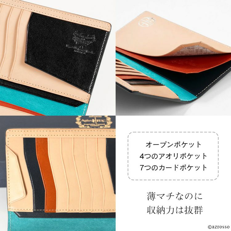 上質イタリアレザーで作るAtelier HIRO(アトリエヒロ)の二つ折り財布。薄型スリムで多機能ながらシンプルな革財布はプレゼントにもおすすめ 二つ折り財布 小銭入れあり レザー 財布 革 二つ折り コンパクト 薄型 本革 黒 ブラック 緑 グリーン 青 2つ折り シンプル スリム 薄い 折り財布 カード入れ 多い 多機能 レディース メンズ