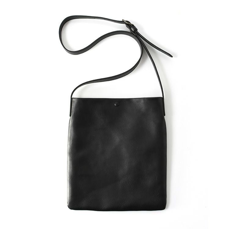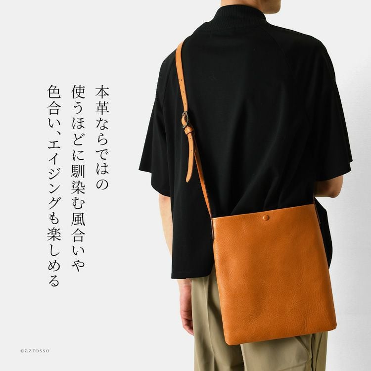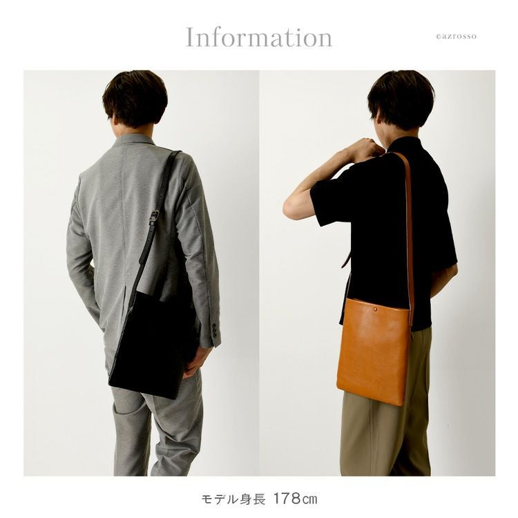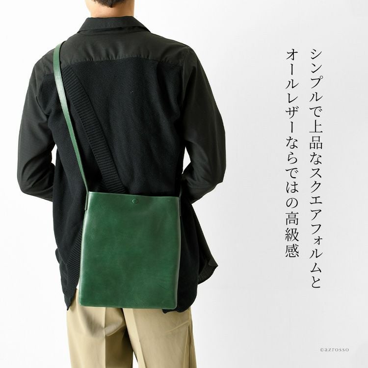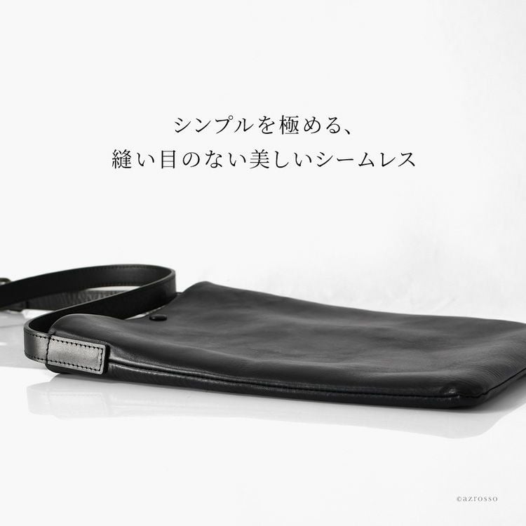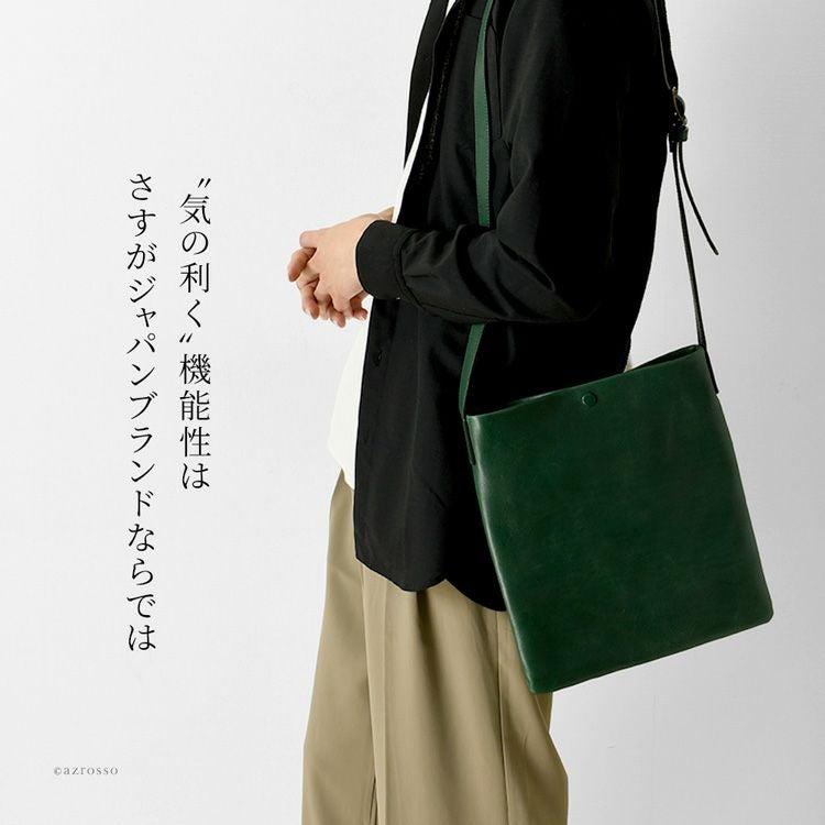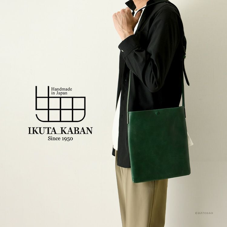 オールレザーならではの高級感、シンプルで上品な本革スクエアショルダーバッグを日本製ブランド生田鞄(IKUTA KABAN)より。縫い目のない美しいシームレス。片手でサッと開閉できるマグネットボタン式 日本製 レザーショルダーバッグ 軽量 薄マチ スクエア 縦型 黒 緑 キャメル 本革 生田鞄 メンズ
