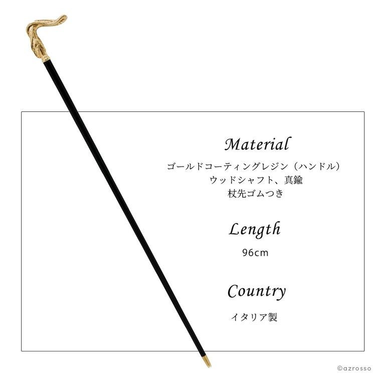 イタリアを代表する高級傘ブランド PASOTTI(パソッティ)の煌めくゴールドステッキ。医療や医術の象徴として古来から親しまれているアスクレピオスの杖をモチーフにした蛇(ヘビ)のアニマルヘッド杖 アスクレピオスの杖 ステッキ 蛇 杖 おしゃれでかっこいいイタリアの杖 プレゼントやギフトにおすすめ pasotti