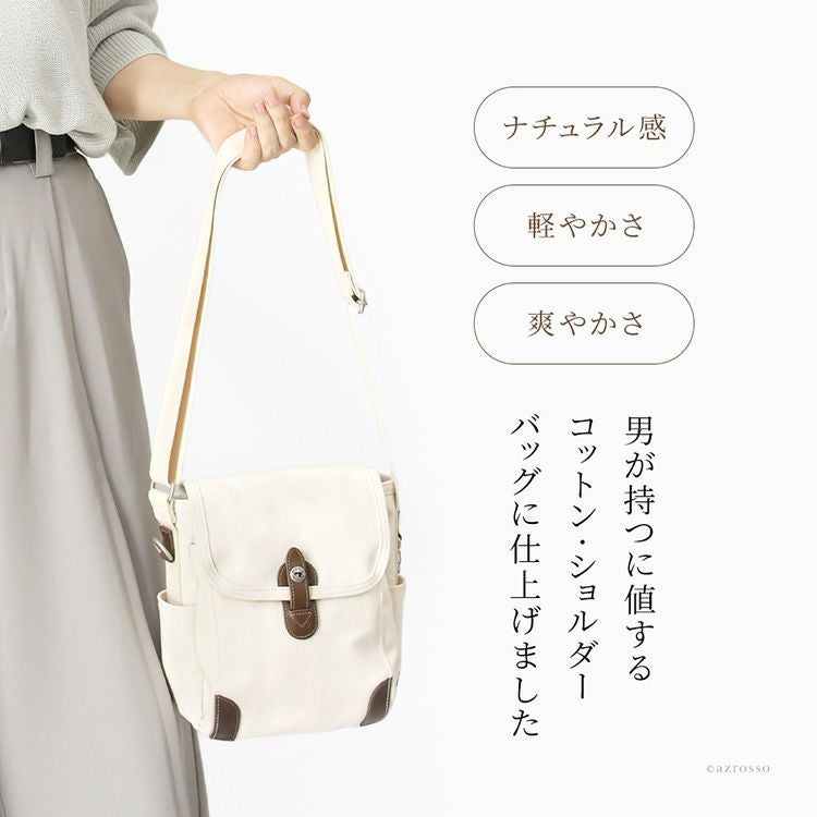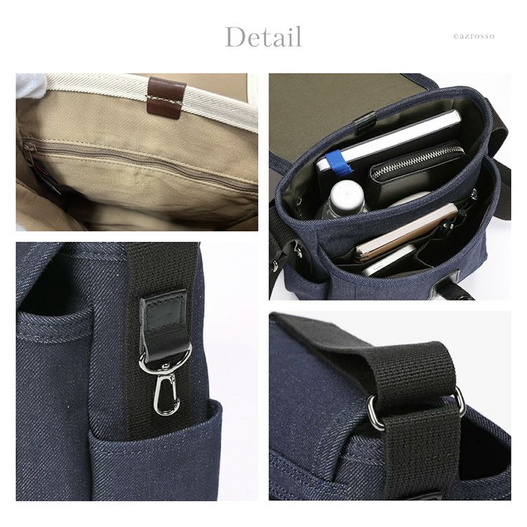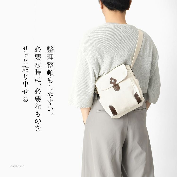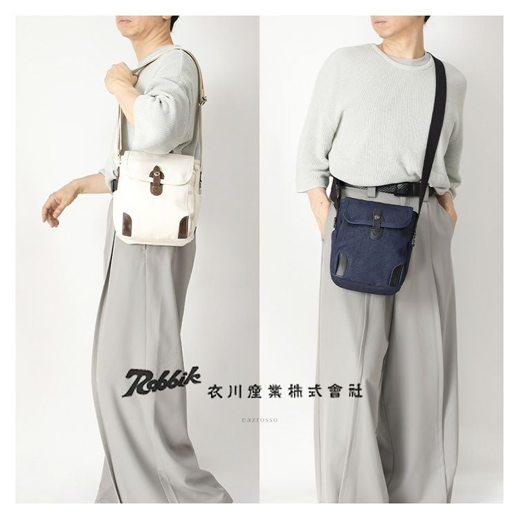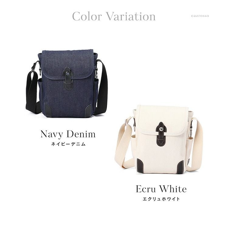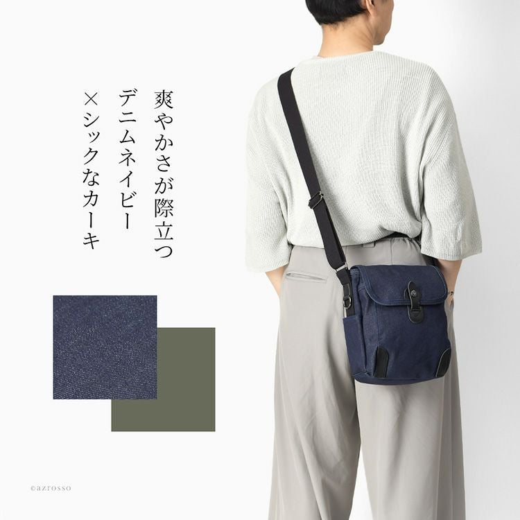 国際認証であるGOTS認証のオーガニックコットンを採用したメンズミニショルダーバッグ(縦型)。夏にぴったりな軽くて爽やかなデニムネイビーとホワイト。日本のバッグメーカー衣川産業からお届けする豊岡製の鞄 日本製 オーガニックコットン ミニショルダーバッグ メンズ 軽い 春 夏 爽やか デニム ネイビー ホワイト ステッチオン 衣川産業 豊岡 鞄