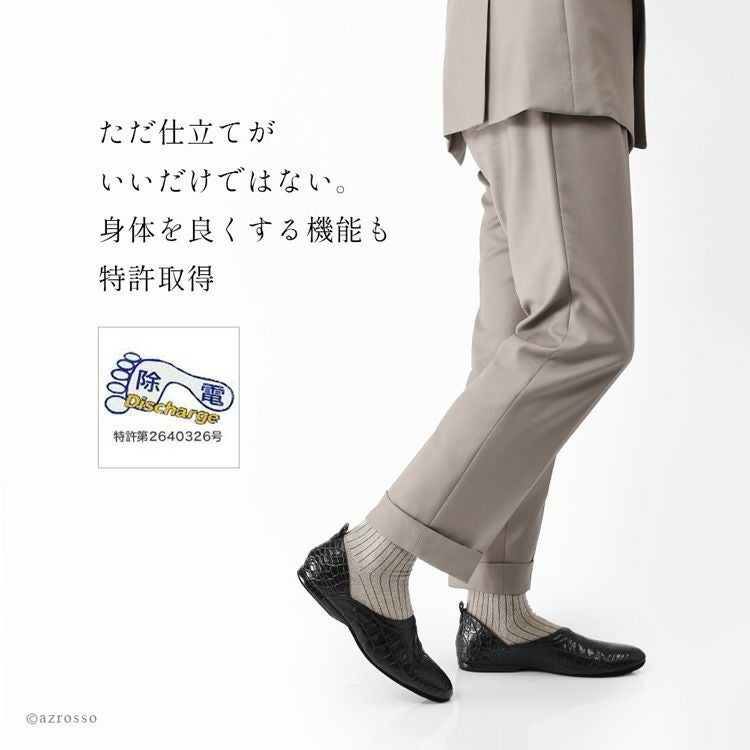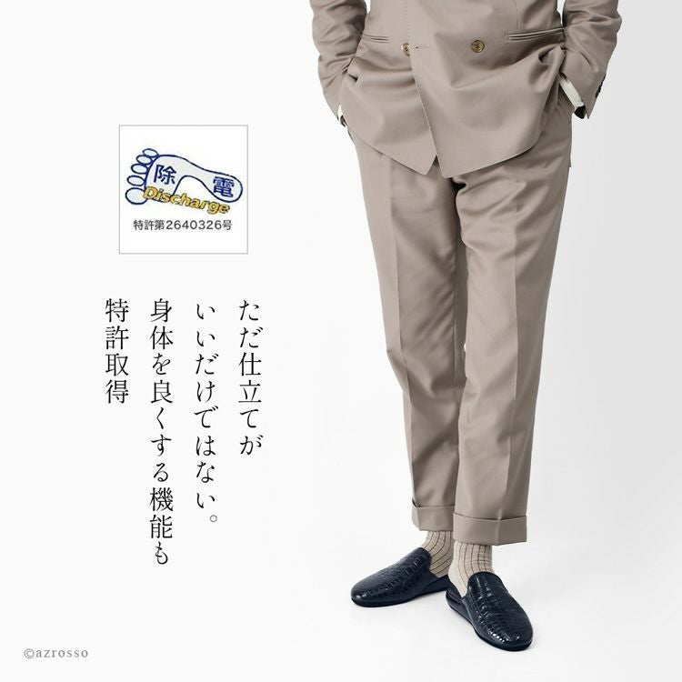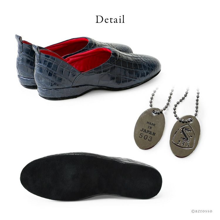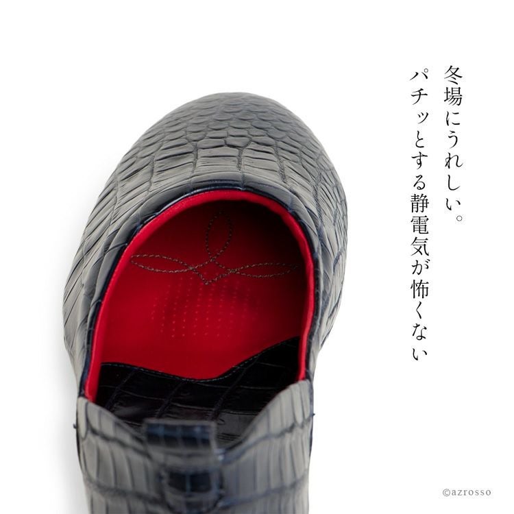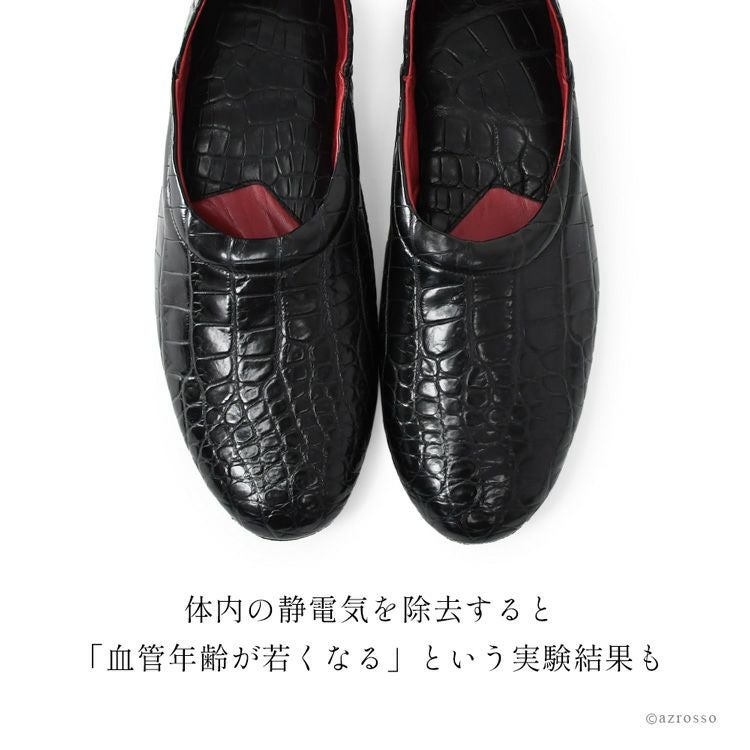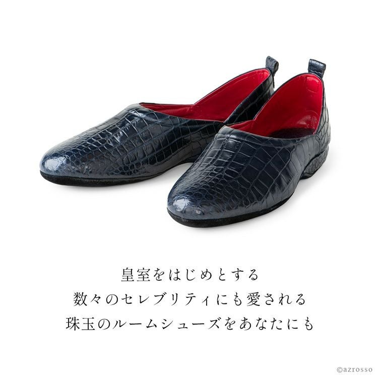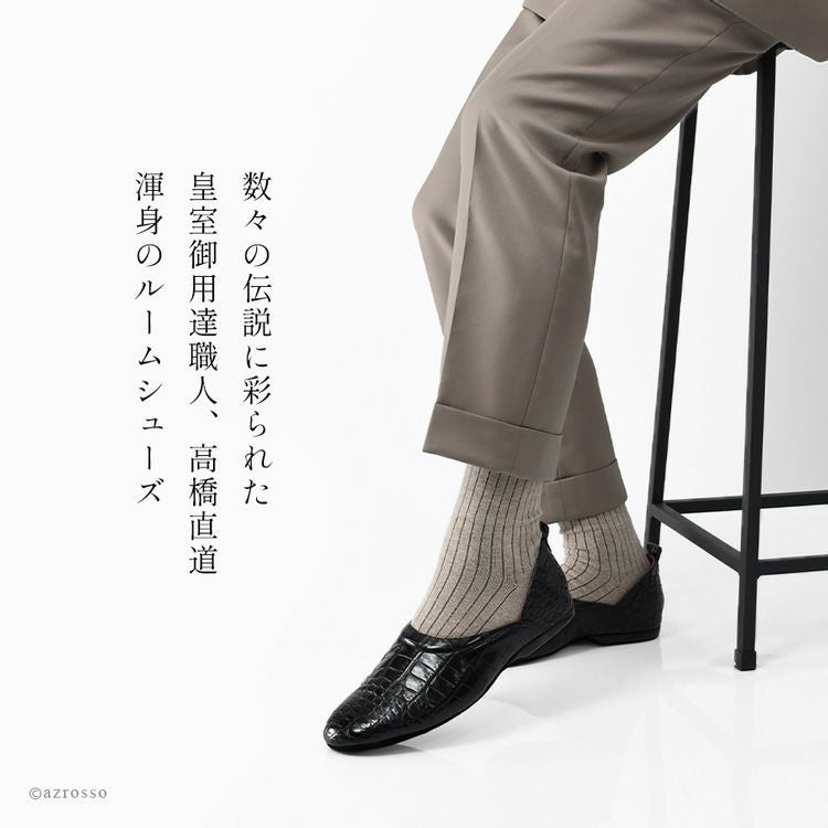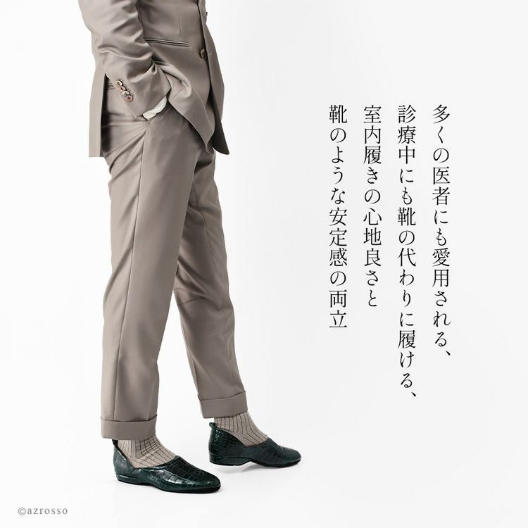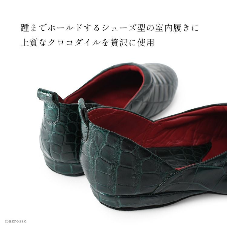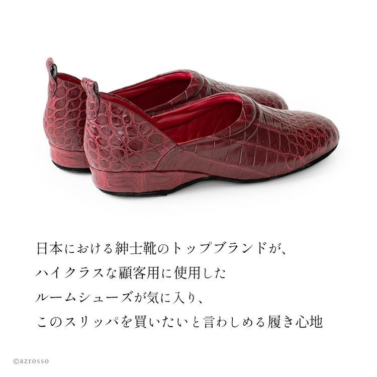 皇室御用達職人がつくる珠玉のクロコダイルスリッパ(かかと付き)。足と一体化するような快適な履き心地。日本製、抗菌・防臭・除電効果ありの男性用ルームシューズ。名入れ刺繍対応 日本製 高級 クロコダイル ルームシューズ かかとあり かかと付き スリッパ メンズ 軽い 革 歩きやすい 室内
