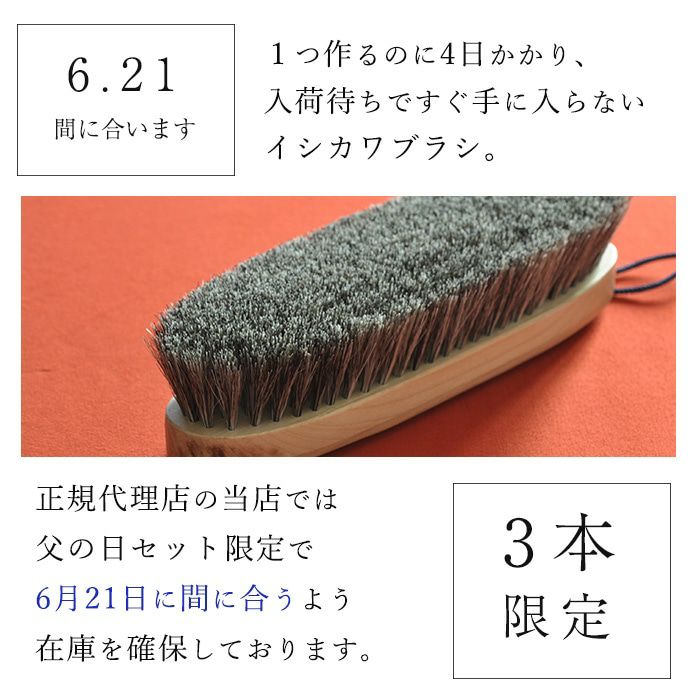 イシカワブラシの発明者、石川氏から直接使用法の指導を受けている正規店、シンフーライフでは、今回、父の日に間に合うように本数限定で在庫を確保しております。