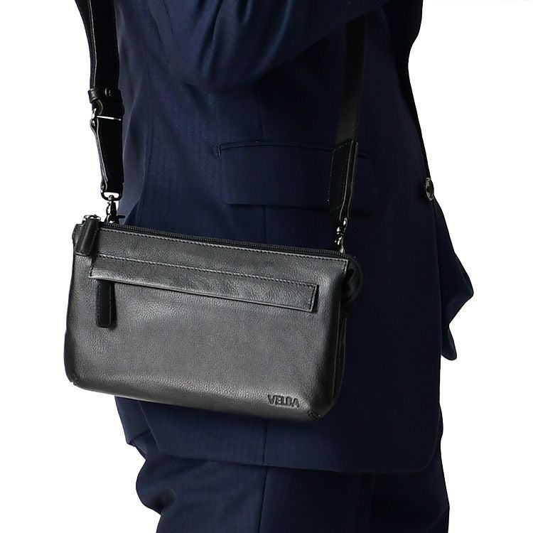 ミニ ショルダーバッグ メンズ 本革 肩掛け 斜め掛け ミニバッグ レザー コンパクト シンプル 小さめ バッグ 2way 服部 豊岡 鞄 ブランド ブラック VELBA 126061