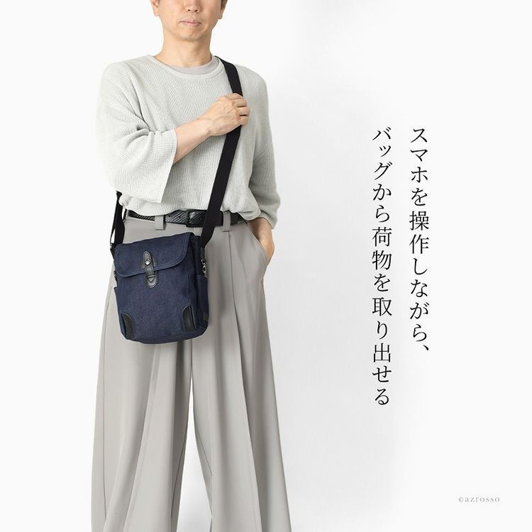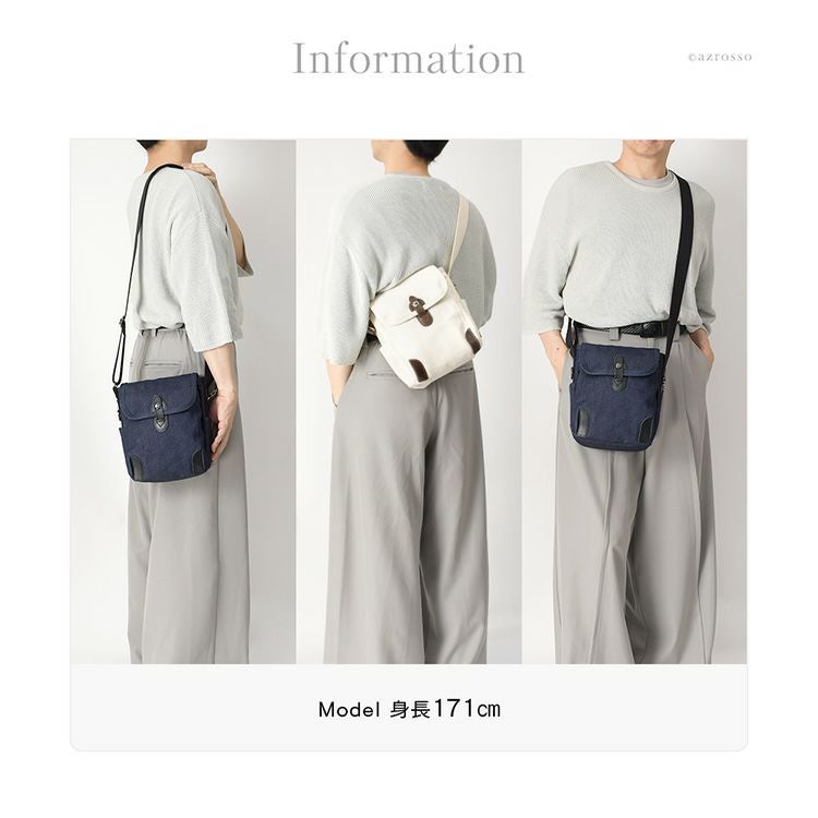 ▼特徴:小さめ 小さい ミニ ショルダー 斜めがけ 肩掛け 整理整頓 収納ポケット 背面ポケット オーガナイザー Dカン ナスカン 綿 コットン オーガニックコットン GOTS認証 マチ広 縦型 シンプル 軽い 軽量 大人 男性 紳士 おしゃれ ナチュラル カジュアル