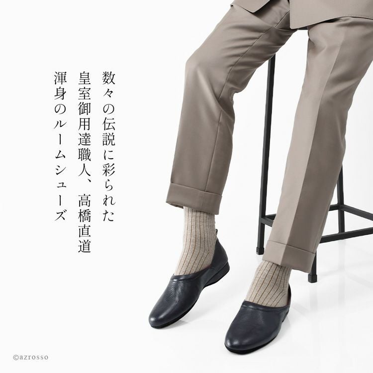 皇室御用達職人がつくる珠玉の本革かかと付きスリッパ。足と一体化するような快適な履き心地。日本製、抗菌・防臭・除電効果ありの男性用ルームシューズ。名入れ刺繍対応 日本製 高級 本革 ルームシューズ かかとあり かかと付き スリッパ メンズ 軽い 革 歩きやすい 室内用 参観 受験 パパ