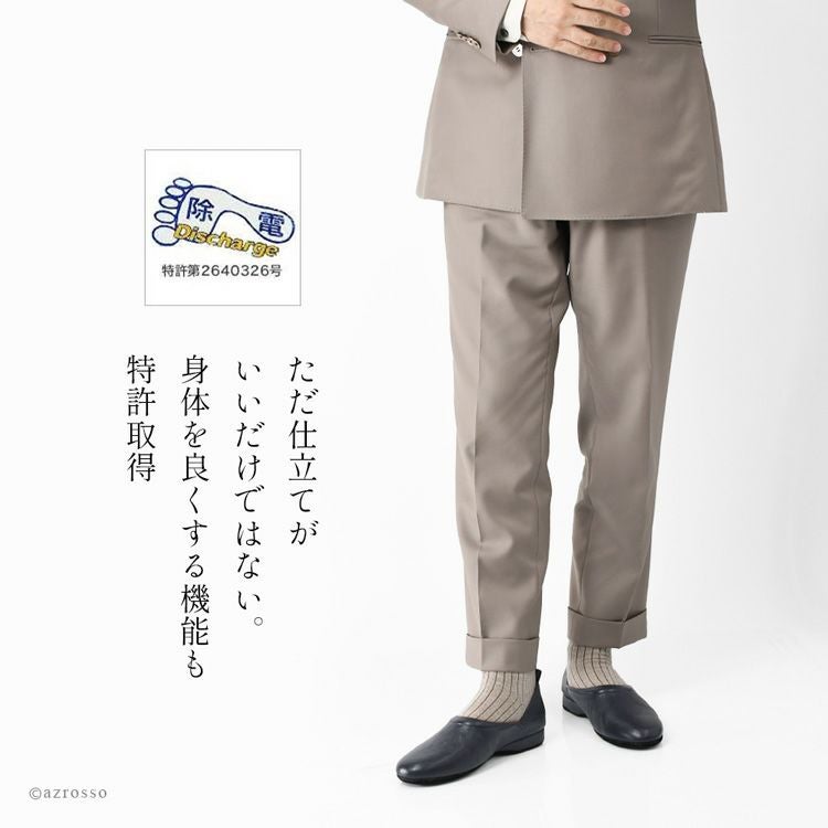 履き物のための「体内静電気除去対策」として考えた特殊素材“炭素繊維と銅繊維の剛体”を用いることで、 体内に帯電する静電気を除去し、血流を促し、身体のバランスを整えます。