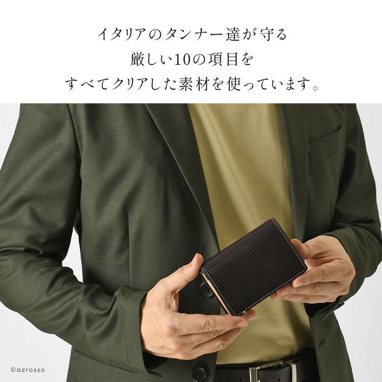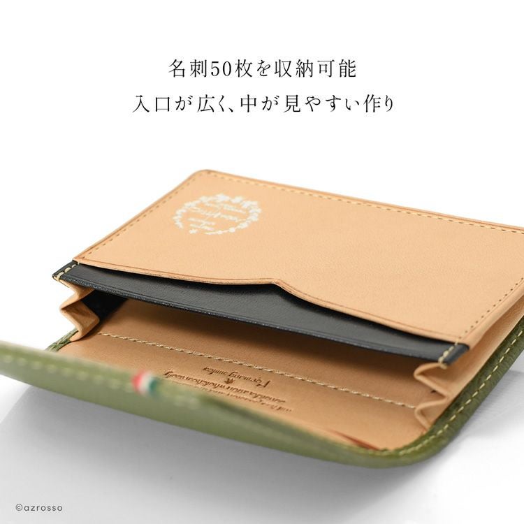 ▼特徴:イタリア製レザー 名刺入 名刺いれ 通しマチ 名刺ケース 本革 外ポケット カードポケット 名刺ポケット 隠しポケット