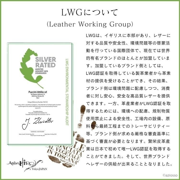 素材と機能を最大限にこだわり、美しく表現したい。いく年たっても愛着のあるコレクションをお届けしたい。自由な発想で徹底的に美しさと機能を追求し、妥協ないコレクションを熱く語り創り上げる。アトリエ・ヒロ。代表の白石さんは、見た目やデザイン、色、縫製など、とにかく“すべてが美しい”を追求。時間と技術を惜しまず、何度も修正を加え、一切の妥協はせずに満足できるコレクションを完成させています。レザーへのこだわりとして、SDGSを推奨、LWG認証の革および植物タンニン鞣しの革を使用。そして、使い心地を追求した機能性、アート性も追求。こだわりぬいた唯一無二の逸品をご堪能下さい。
