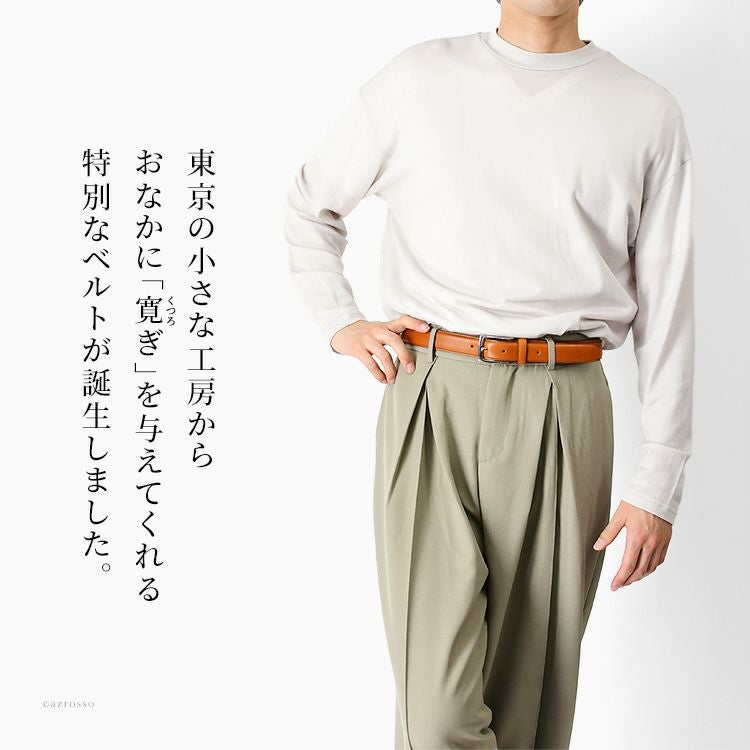 ▼特徴:本革 伸びる ベルト メンズ 伸縮 楽ちん ナガサワベルト 長澤ベルト 工業 姫路レザーベルト 3cm おしゃれ ビジネス ベルト カジュアル 紳士用ベルト ストレッチ 革 100cm 110cm 120cm