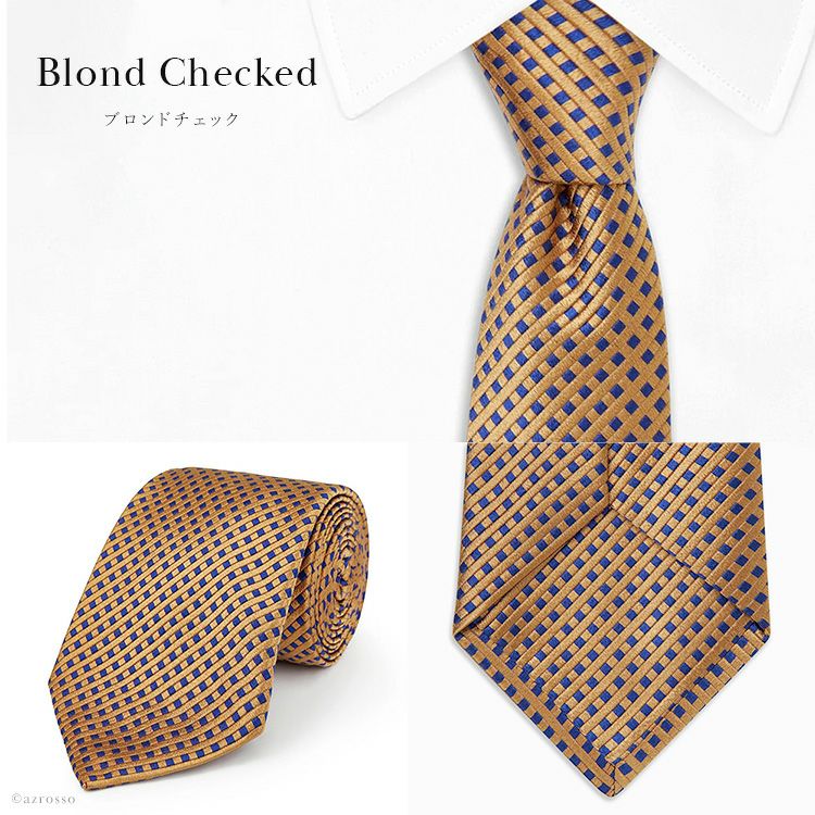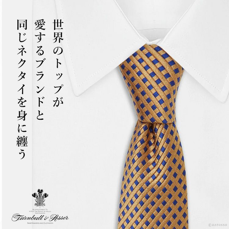 「007/ トゥモロー・ネバー・ダイ」ブロンド チェック ネクタイ シルク 100% イギリス製 ビジネス ダイアモンド 金 紺 ネイビー ブランド ターンブル アッサー Turnbull&Asser