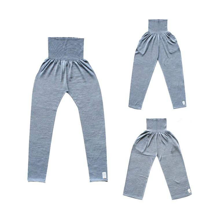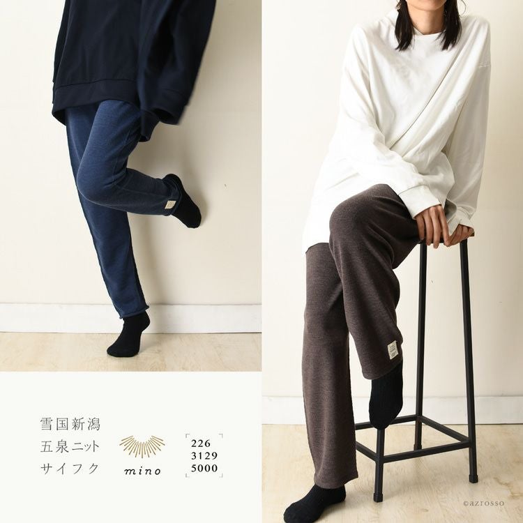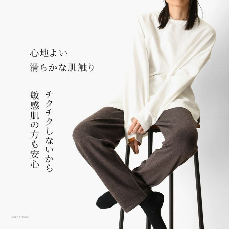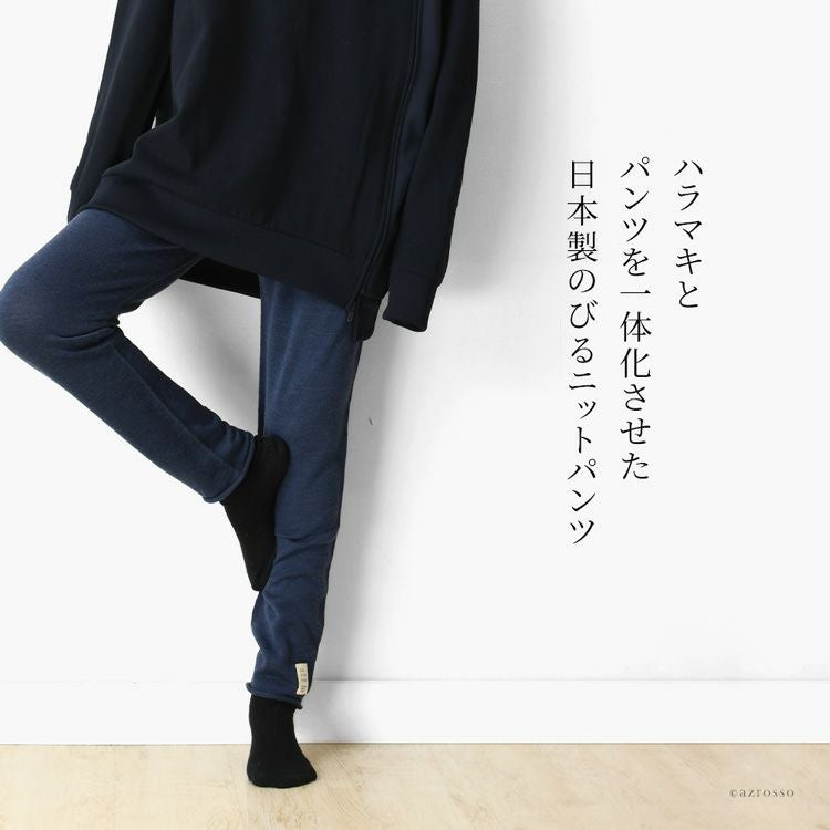 ▼特徴:部屋着|ニットパンツ|ハラマキ付き|レギンス|伸びる|ホールガーメント|暖かい|ウール|柔らかい|肌に優しい|チクチクしない|冷え性