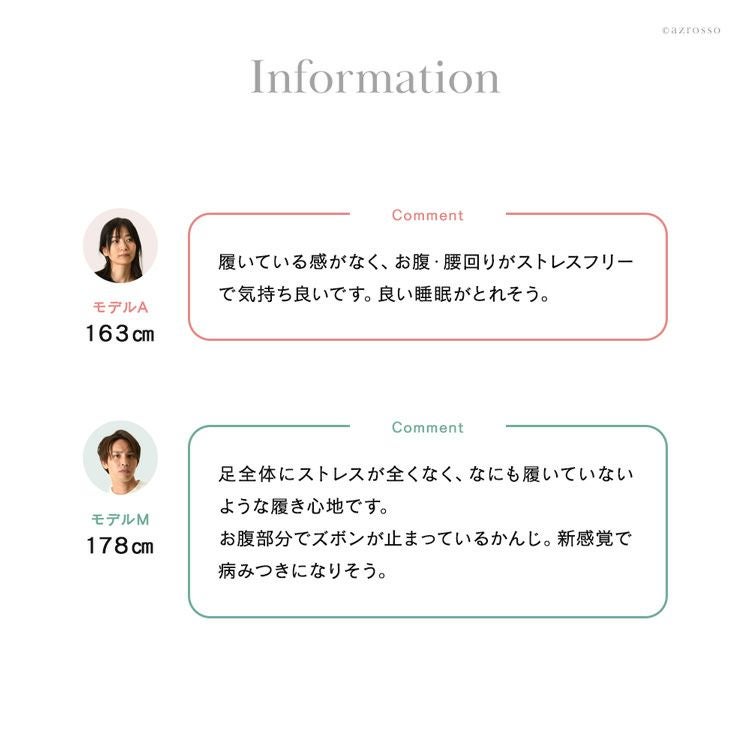着用コメント:履いている感がなく、お腹・腰回りがストレスフリーで気持ち良いです。良い睡眠がとれそう。