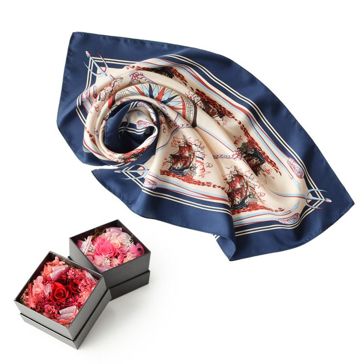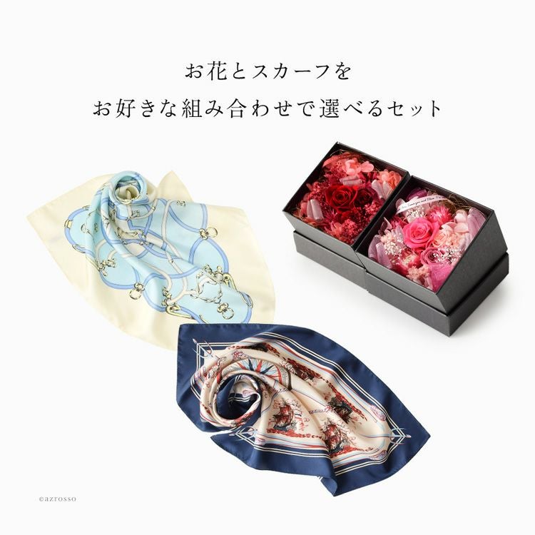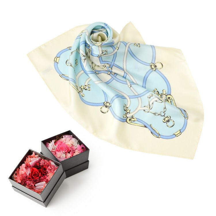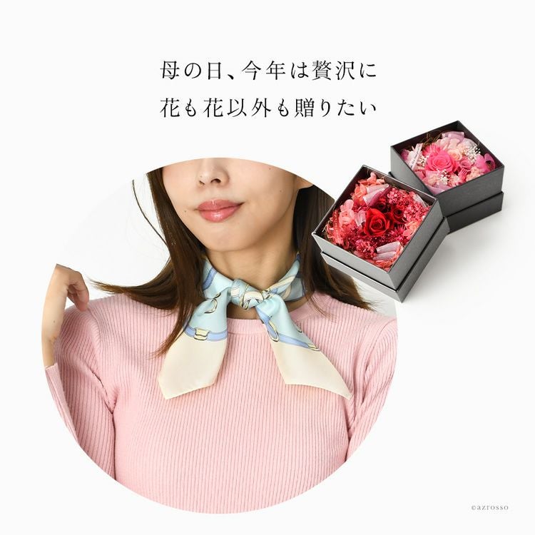 母の日ギフト スカーフ シルク100% 55cm×55cm 日本製 プリザーブドフラワー ドライフラワー ラッピング カード付き フラワーボックス