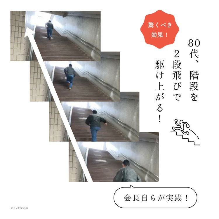 御年83歳でこの若々しさ。開発した本人が一番のファンであることから、その効き目に納得。お母様にもプレゼントし、90歳を過ぎても腰も曲がらずに歩行器を使わないで生活していたそうです。