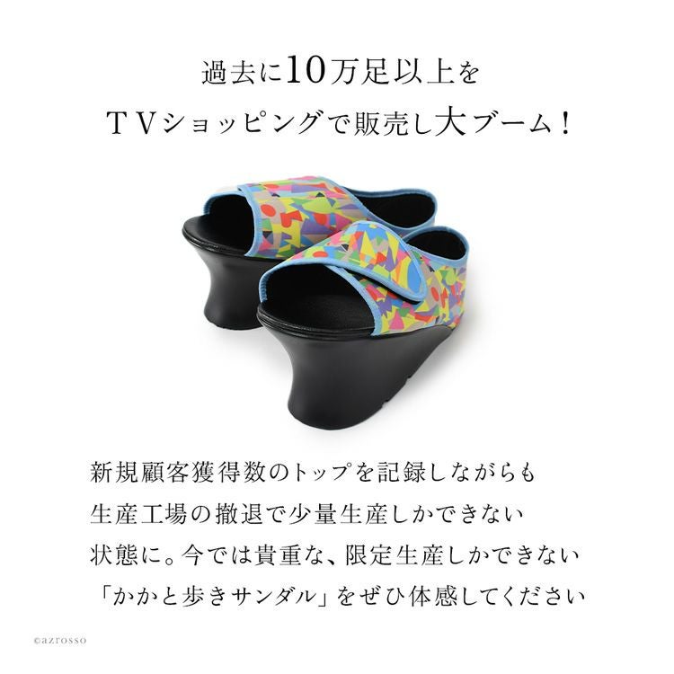 かかと歩きを強制的にするこの「かかと歩きサンダル」は、過去にあべこべシューズとして10万足以上の大人気商品となりました。大手のTVショッピングでは、新規顧客獲得数のトップを3度もとったほどの人気商品だったものの、生産工場の撤退などにより長らく少量生産を余儀なくされています。