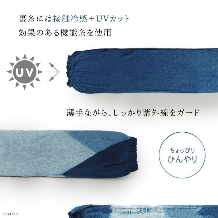藍染 アームカバー uvカット ロング アームウォーマー 涼しい レディース 日本製 ブランド インディゴ ブルー 藍色【通常ネコポス配送】