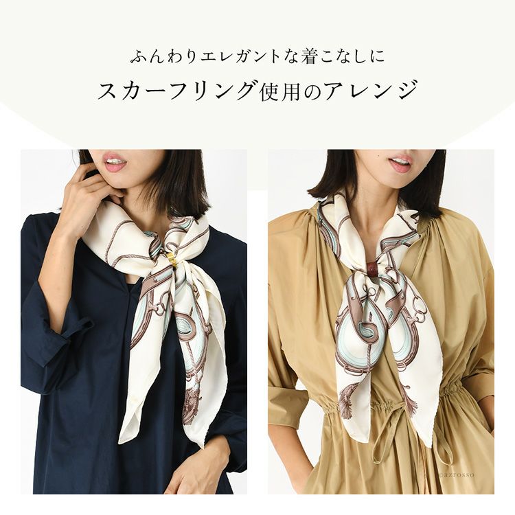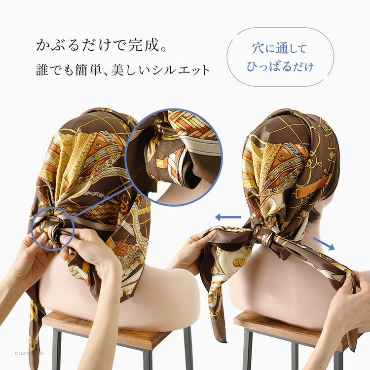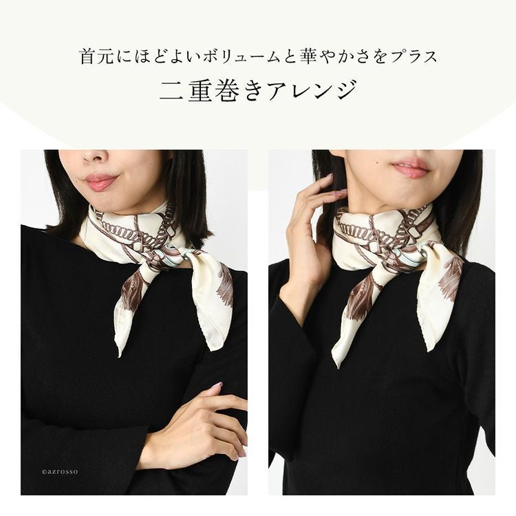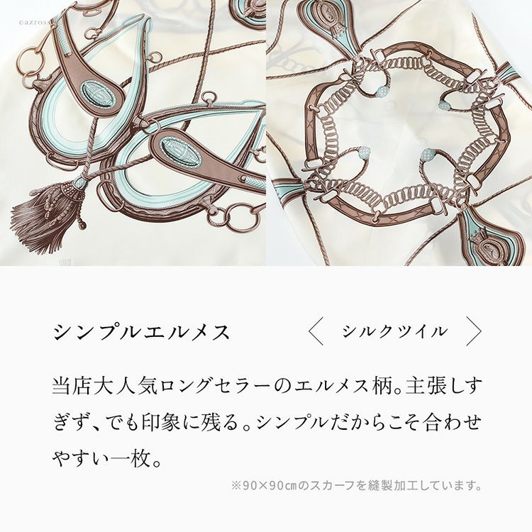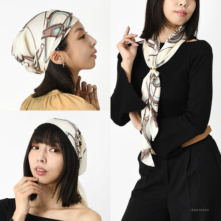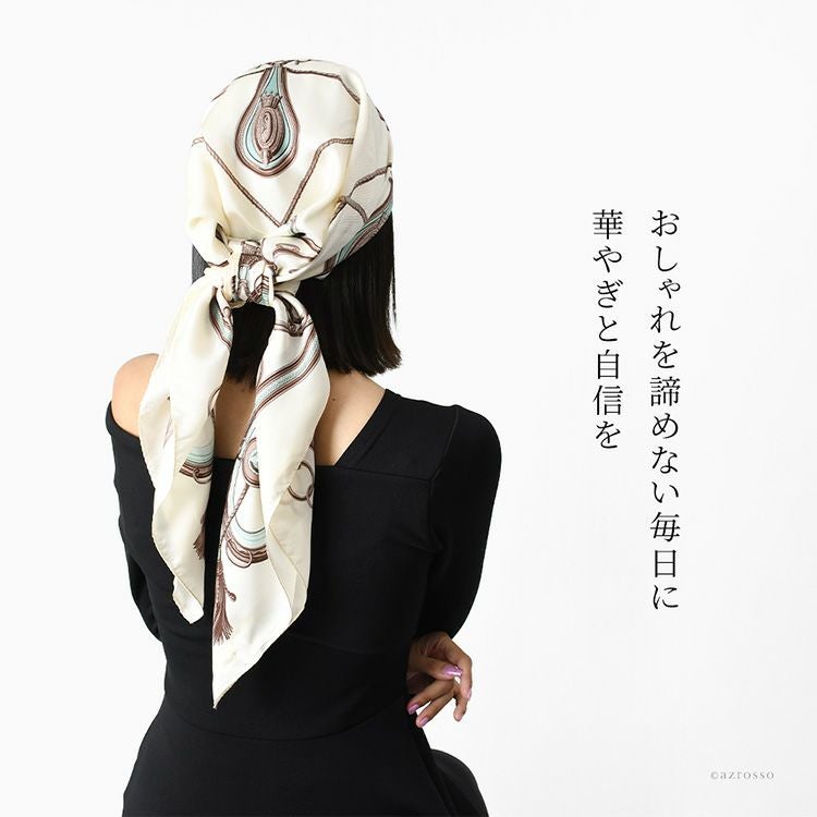 ヘッドスカーフ シルクスカーフ 馬具柄 シルク100% ケア帽子 ターバン 日本製 横浜スカーフ シンプルエルメス【通常ネコポス配送】