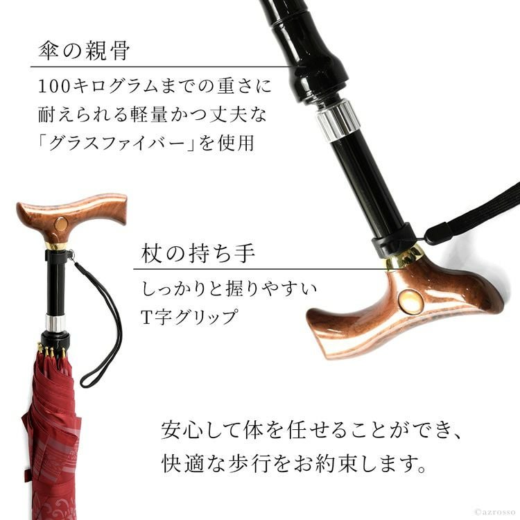 贈り物として人気のステッキインアンブレラ。杖と傘が一体化したスマートなアイテムです。傘は雨傘としても日傘としても使えて便利。杖が必要なお母様への母の日ギフトに嬉しい一本です。