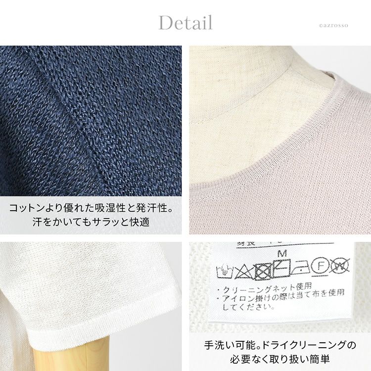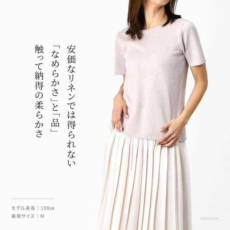 リネンカットソー 日本製 半袖 洗えるトップス レディース リネン100% ビアセリカ ウォッシャブルリネン