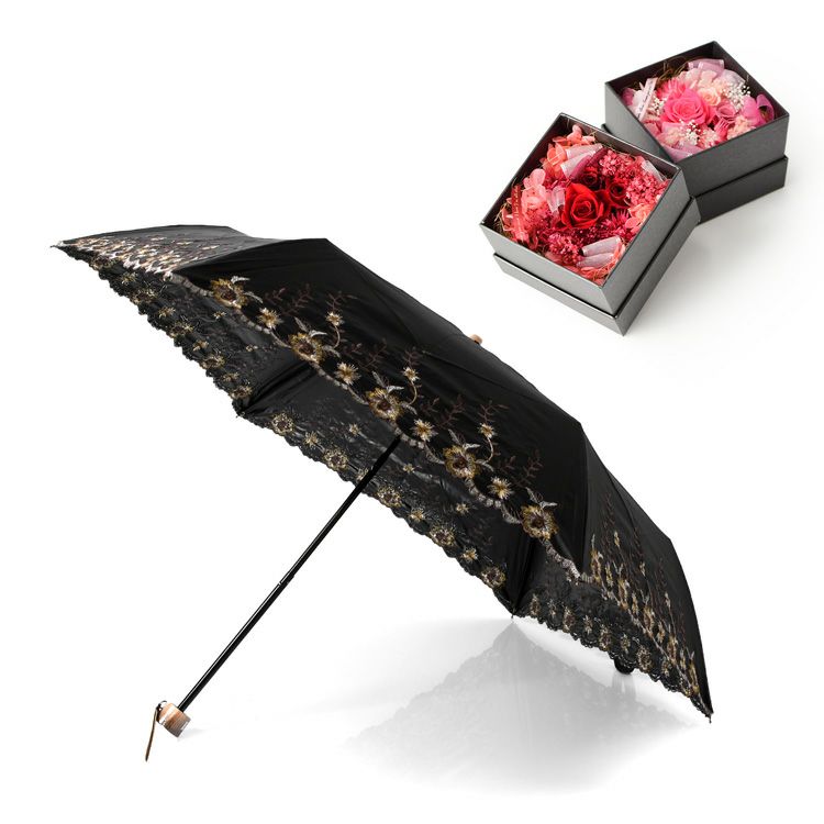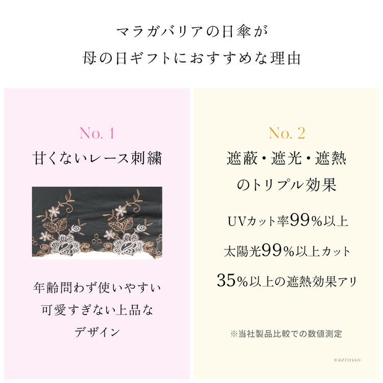 ピンクローズの花言葉は「感謝」。まさに母の日に送るにふさわしい、エレガントな花柄日傘です。