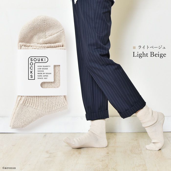 編み目の大きなローゲージで編まれた靴下は通気性が良く、和紙は綿に比べ約1.3倍の吸湿・吸水性があるため、1日中さらりとした肌ざわりを楽しんで頂けるソックスです。