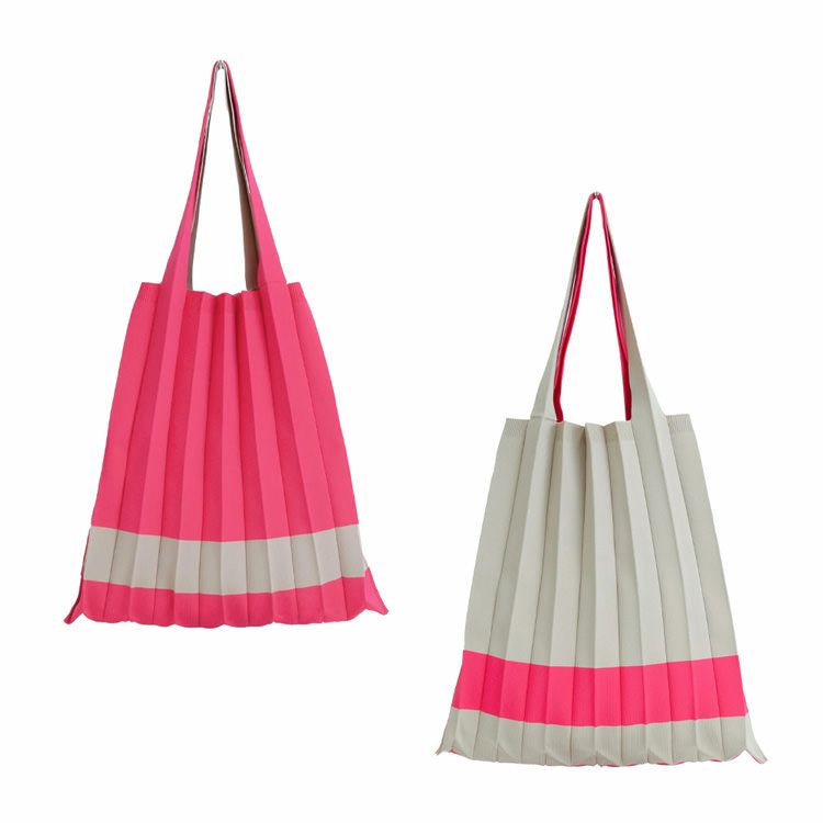 軽いから肩に負担がかからない、洗えるから使いやすい。ちょっとしたお買い物のときにも便利なニットのバッグです。コンパクトに折りたためるところも魅力です。