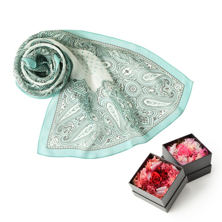 母の日ギフト ストール シルク100% 60cm×180cm 日本製 プリザーブドフラワー ドライフラワー ラッピング カード付き フラワーボックス