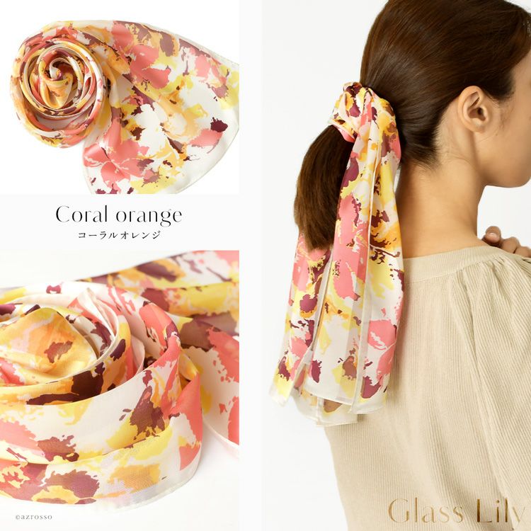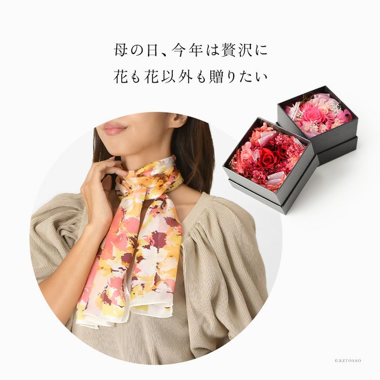 母の日ギフト スカーフ シルク100% 30cm×130cm 日本製 プリザーブドフラワー ドライフラワー ラッピング カード付き フラワーボックス