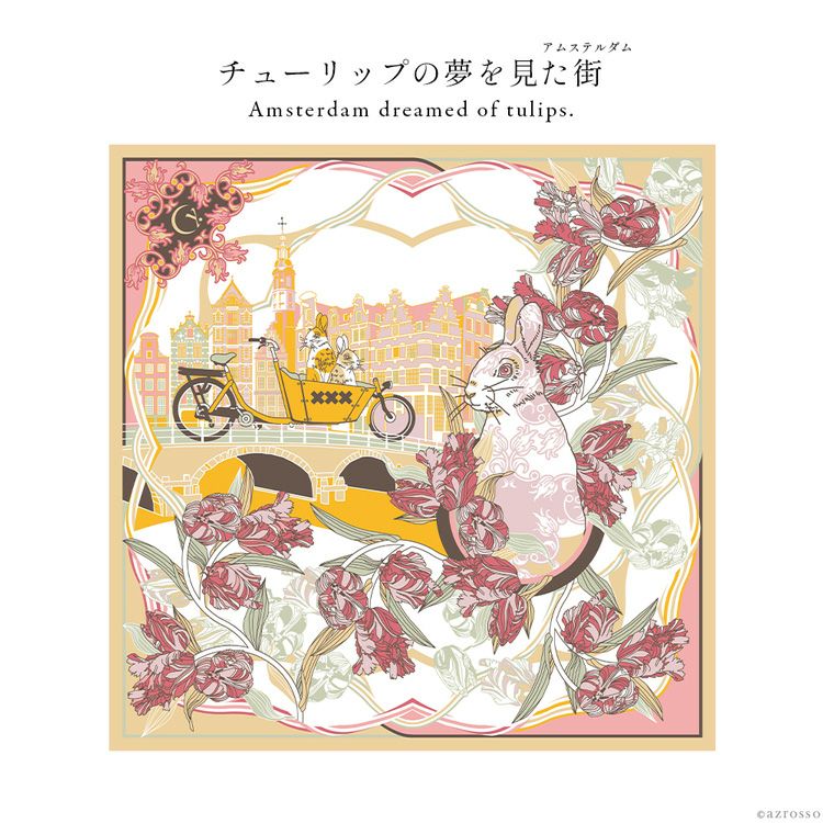 45×45|ドットワイ(.Y) のチューリップが花咲くアムステルダムがデザインされたミニスカーフ。母の日、敬老の日、女性への誕生日プレゼントにも ドットワイ ミニスカーフ コットン チューリップの夢を見たアムステルダム 日本製 うさぎ
