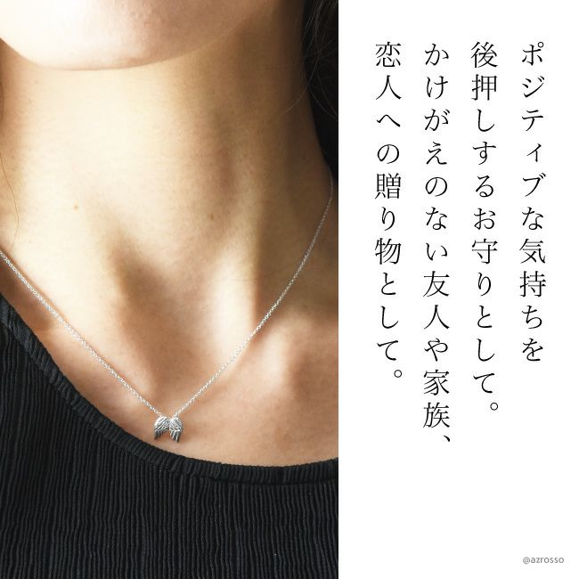 華奢なチェーンと小ぶりなシルバーのエンジェル ウイング(天使の羽)モチーフは、女性のデコルテを美しく魅せ、愛される美しさを後押ししてくれます。