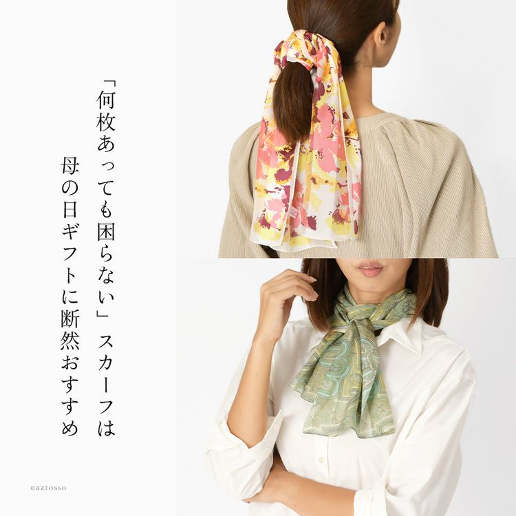 母の日ギフト スカーフ シルク100% 30cm×130cm 日本製 プリザーブドフラワー ドライフラワー ラッピング カード付き フラワーボックス