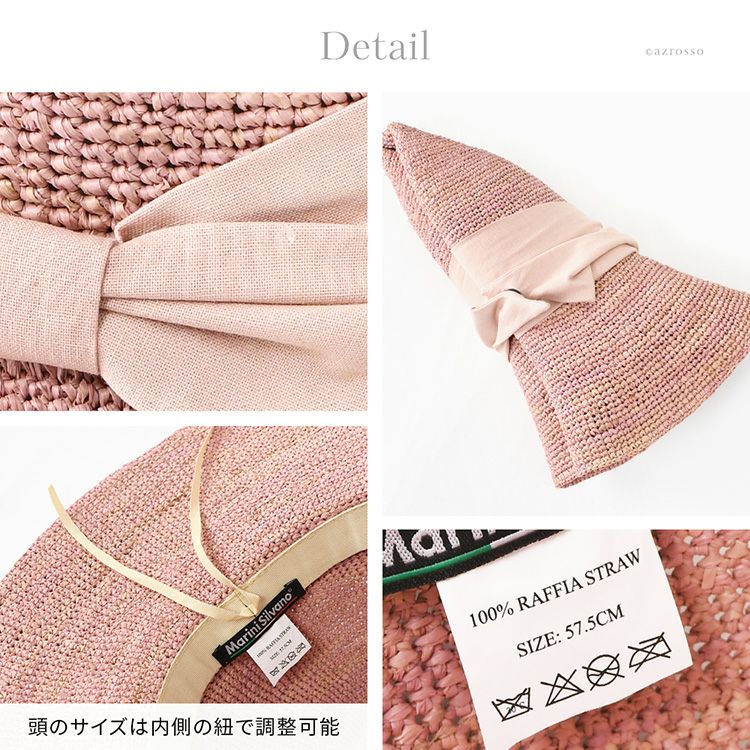 イタリア製 ラフィア帽子 つば広 ビックリボン UVカット 折りたたみ レディース 夏 ハット 麦わら帽子 マリーニシルヴァーノ