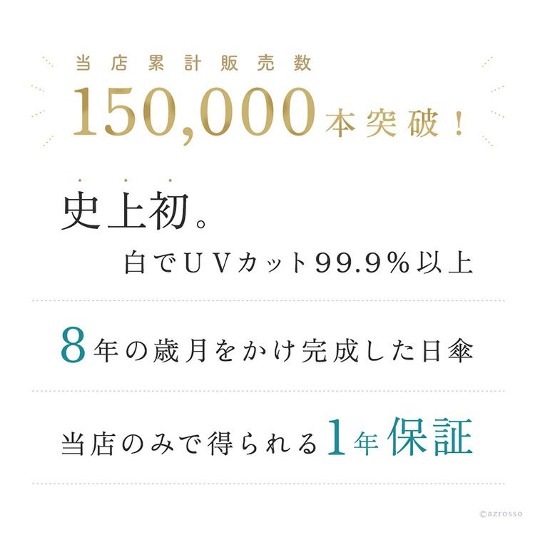 8年の歳月をかけて開発された、高い強度のポリエステルの生地を酸化チタンと特殊鉱物のコーティング剤で包んだ新素材「プレミアムホワイト」を生地に使い、ボーイング飛行機に使用するカーボンファイバーを親骨に使用することで、ゲリラ豪雨にも耐えられるほど雨に対する強度がありながら、軽量化も実現しました。