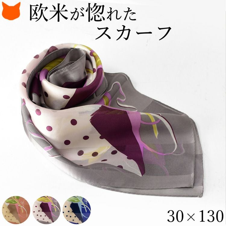 カラードットタイ シルク サテンストライプ 長方形 スカーフ 28×128 cm 日本製 ブランド 春夏 ドット柄【通常ネコポス配送】