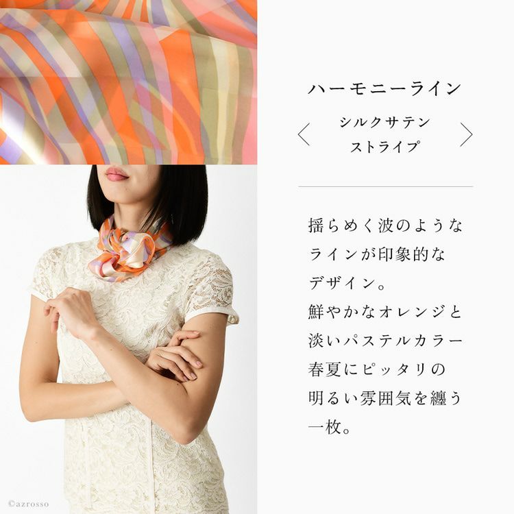 ハーモニーライン シルク サテンストライプ ループスカーフ かぶるだけ 幾何学柄 シルク100% 薄手 日本製 横浜スカーフ【通常ネコポス配送】
