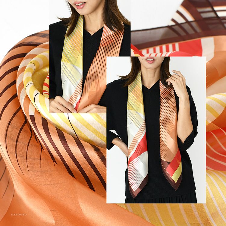 リベロ シルク サテン スカーフ 幾何学模様柄 シルク100% 90cm×90cm 正方形 日本製 横浜スカーフ【通常ネコポス配送】