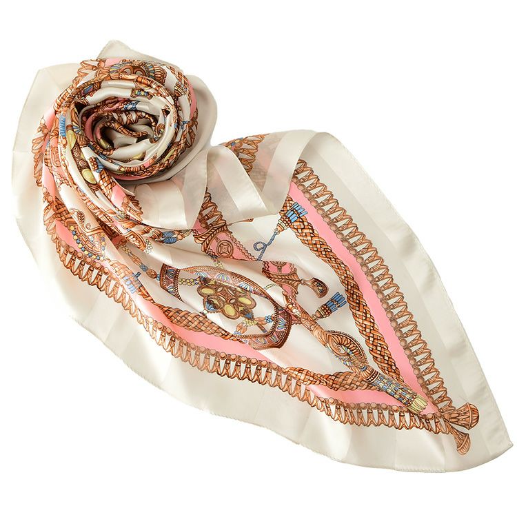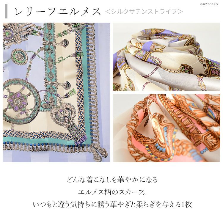 レリーフエルメス シルク サテンストライプ 大判 スカーフ 90cm 日本製 正方形 ブランド 春夏 エルメス柄【通常ネコポス配送】