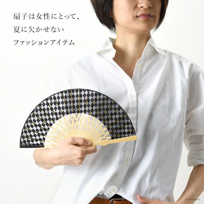 くるりの小さめ扇子【DIA】おしゃれでかわいいコンパクトなミニ扇子 ダイヤ柄【通常ネコポス配送】