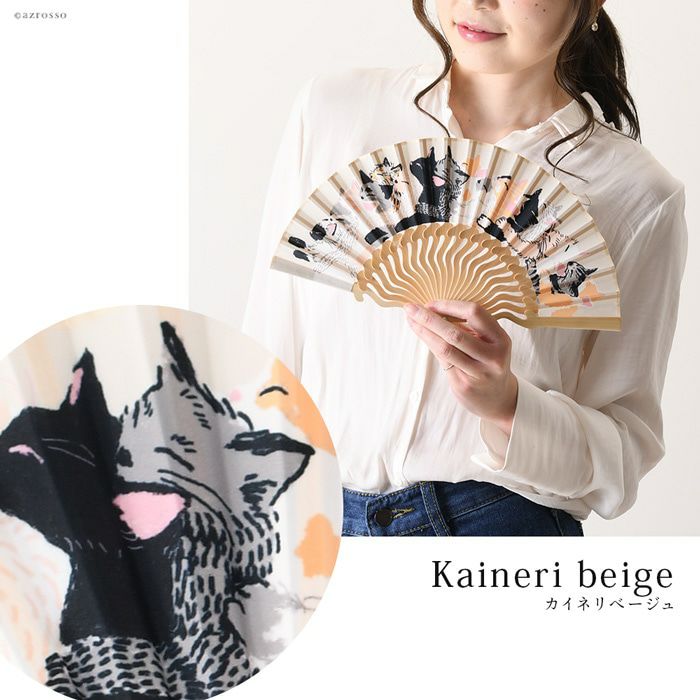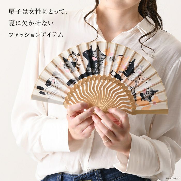 猫柄 扇子 ねこぎゅうぎゅう コンパクト 小さめ ミニ扇子 くるり【通常ネコポス配送】