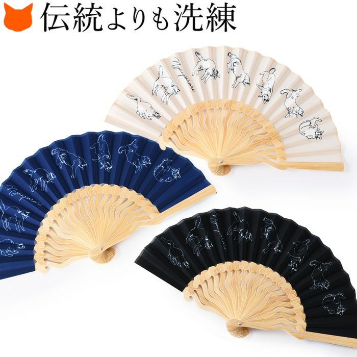 猫柄 扇子 にゃんぱらり コンパクト 小さめ ミニ扇子 くるり【通常ネコポス配送】
