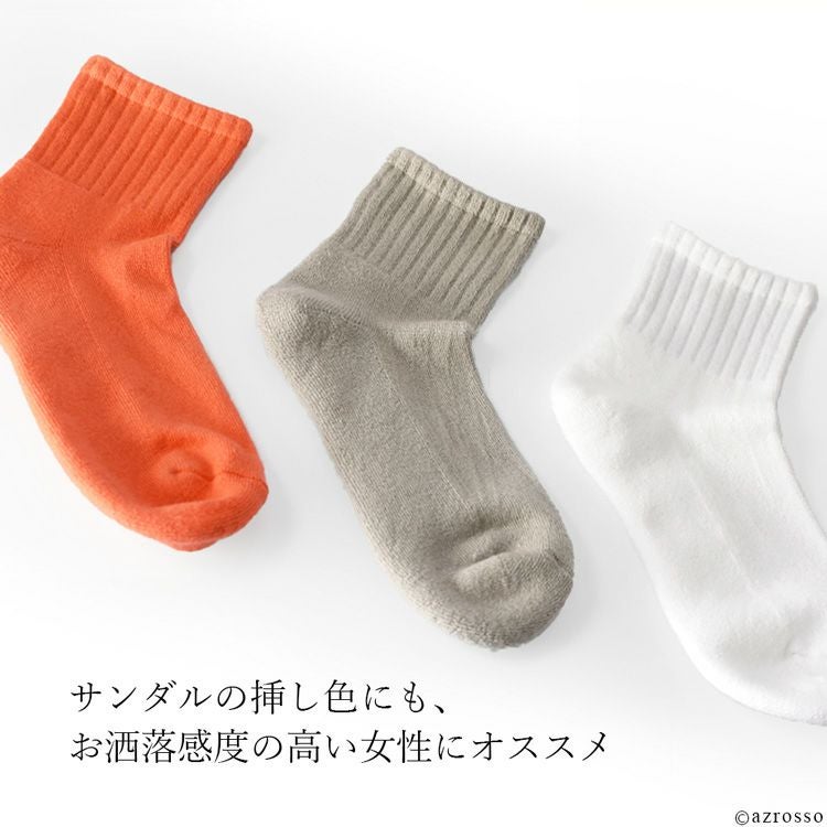 ショート丈 コットン ソックス 綿 靴下 春夏 通年 ショートソックス 足 冷え対策 冷房対策 日本製 ブランド 温活 白 ホワイト グレー オレンジ【通常ネコポス配送】