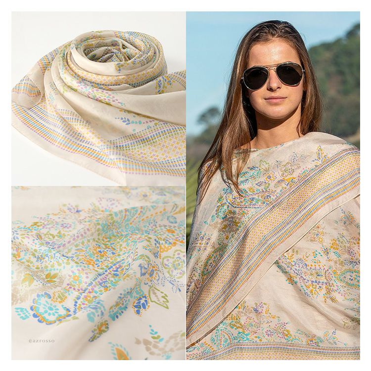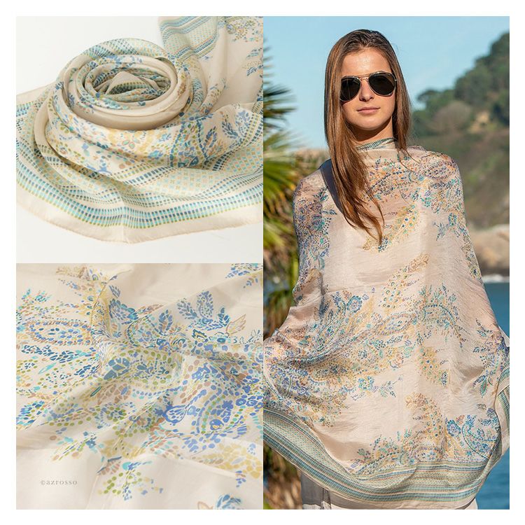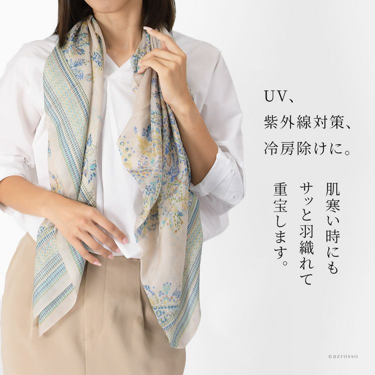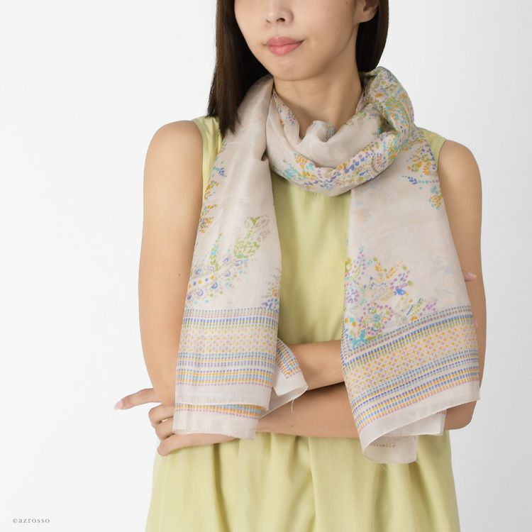 シルクストール 大判 花柄 ペイズリー柄 薄手 uvカット コンパクト ベージュ ショール ブランド カラーズデオトノ COLORS DE OTONO レディース