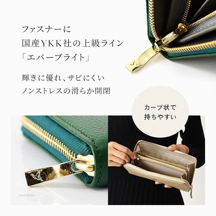 柔らかいイタリアンシュリンクレザーを使用し、しっかり入る長財布なのに驚きの薄さ。小さめバッグでもお財布のボリュームを心配せずに持つことができます。出し入れがスムーズなL字ファスナーも使いやすくて◎日本製のお財布ならではの、細部まで行き届いた丁寧な縫製も魅力的です。真ん中に入ったステッチがさりげなくおしゃれ。
