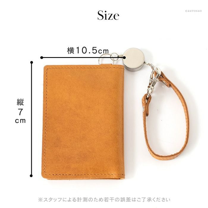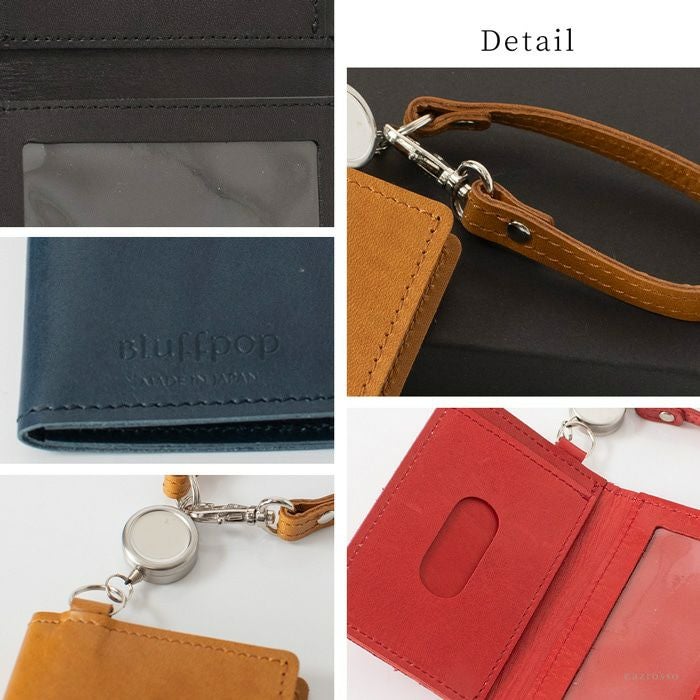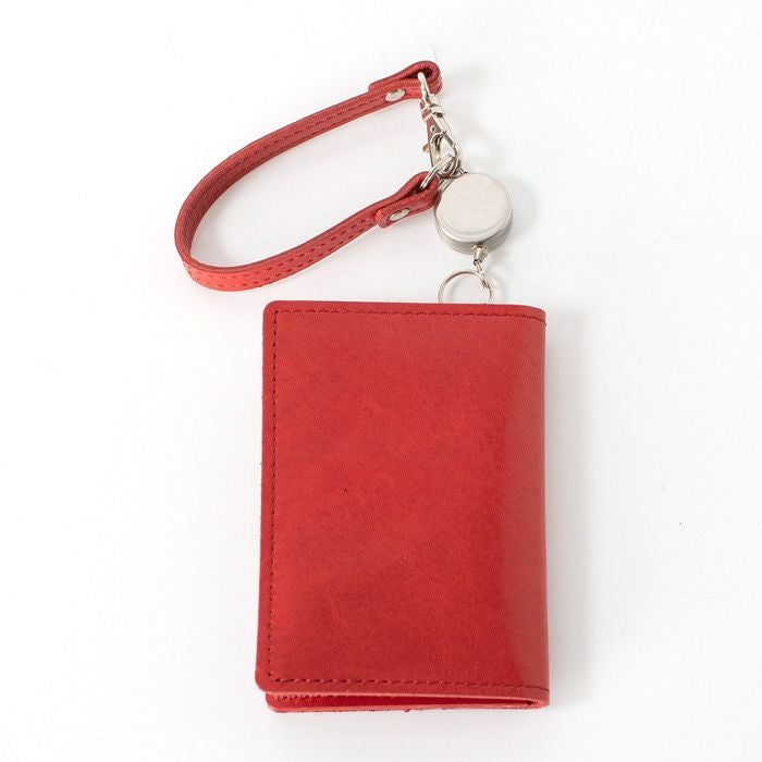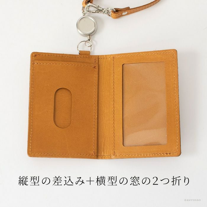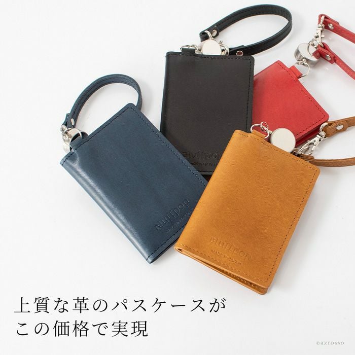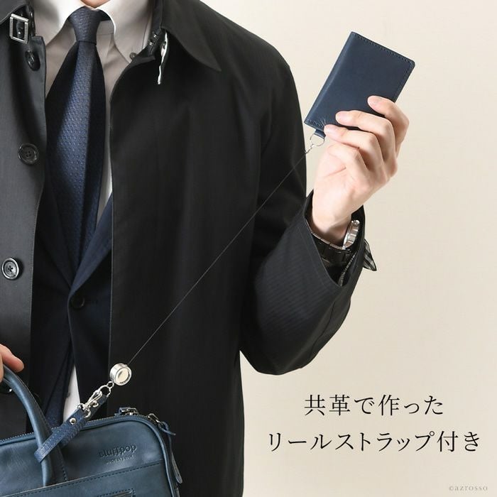 リール付き パスケース 二つ折り 本革 定期入れ 電子マネーケース ICカードケース 二つ窓 日本製