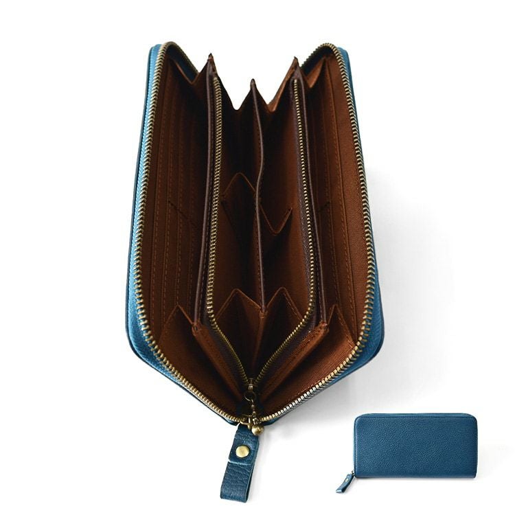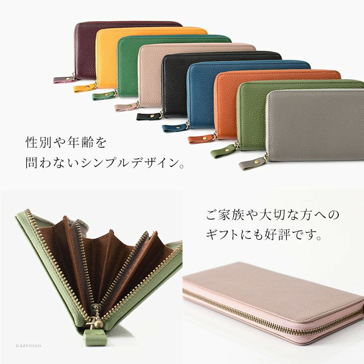▼特徴:カード入れ 収納力 大収納 充実 本革 牛革 カーフレザー ラウンドファスナー L字ファスナーコインケース くすみカラー