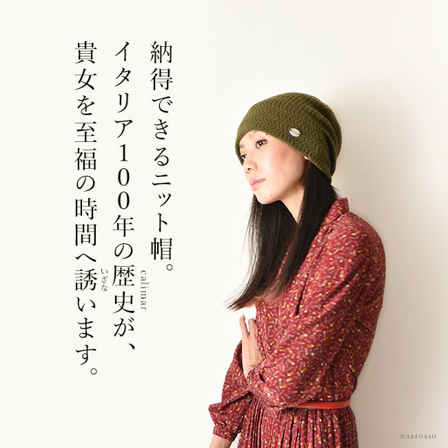 ベビーアルパカ レディース ニット帽 イタリア製 ブランド カリマール calimar 黒 ベージュ カーキ