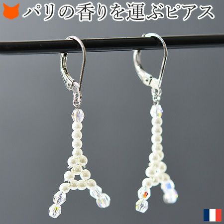 揺れるパールピアス パリのシンボルエッフェル塔モチーフ 世界で唯一、大阪でしか作れない極小パール、「ユレアパール」で作った大人かわいい上質ピアス フランス製 真珠 ホワイト