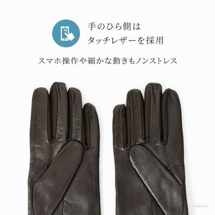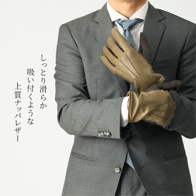イタリア製 手袋 スマホ対応 薄手 本革 メンズ 革手袋 カシミヤ 暖かい フィット ベージュ ブラウン イタリア ブランド